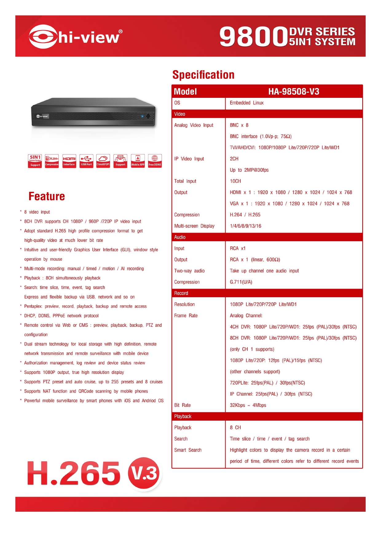 เครื่องบันทึก HIVIEW DVR รุ่น HA-98508-V3 จำนวน 8 ช่อง